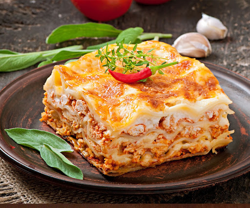 Retire do forno e deixe a lasanha descansar por alguns minutos antes de cortar.