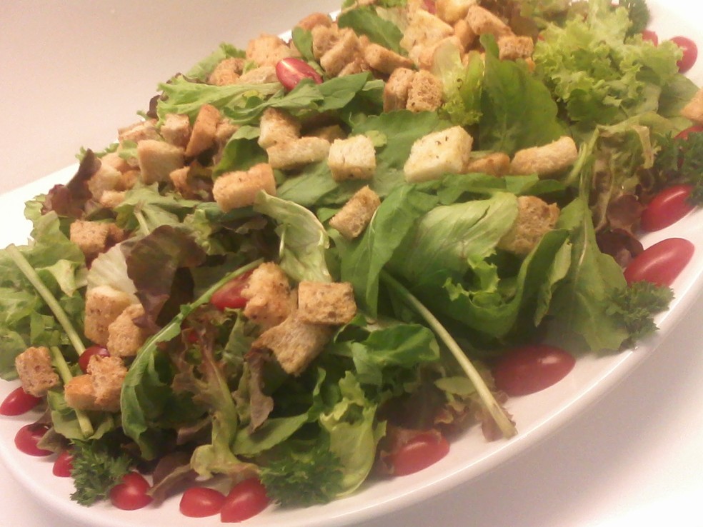 Receitas Ninja – Mix de folhas com molho chimichurri e crótons