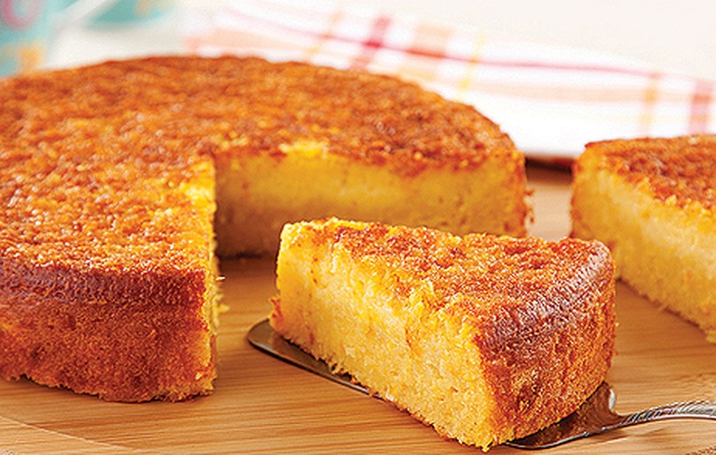 - Bolo de milho com coco ralado para um toque tropical.