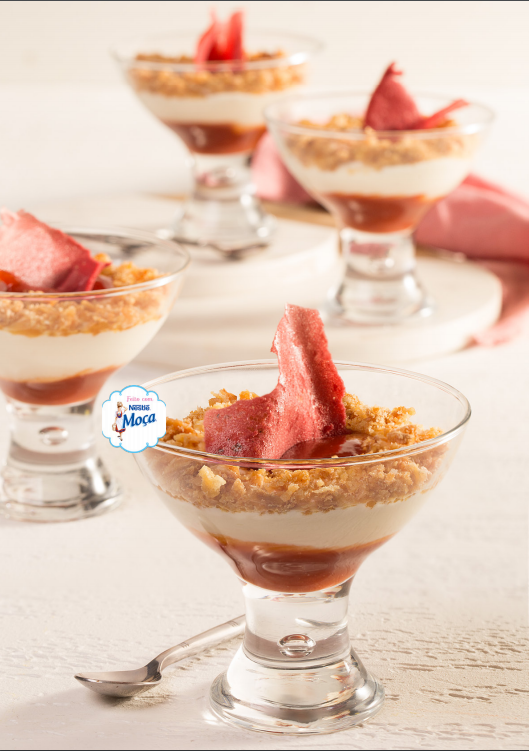 Continue lendoINGREDIENTES Mousse de queijo • 400 g de queijo branco frescal • 150 g de MOÇA® RECHEIO & COBERTURA LEITE