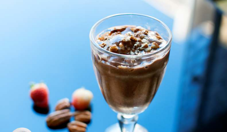 Continue lendoINGREDIENTES: 1 banana congelada 4 morangos congelados 1 colher de sobremesa de cacau 1 colher de sobremesa de leite de