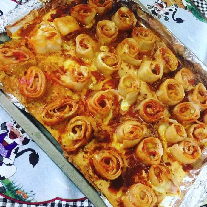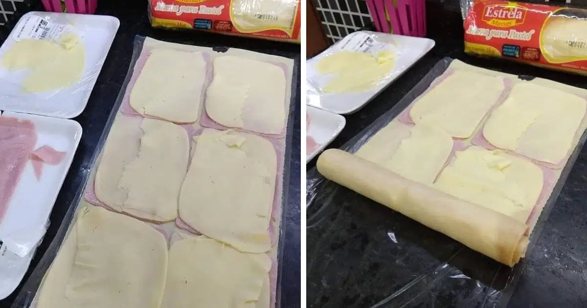 Continue lendoIngredientes: 1 pacote de massa de pastel (rolo) 300 gramas de mussarela fatiada 200 gramas de presunto fatiado 400ml de