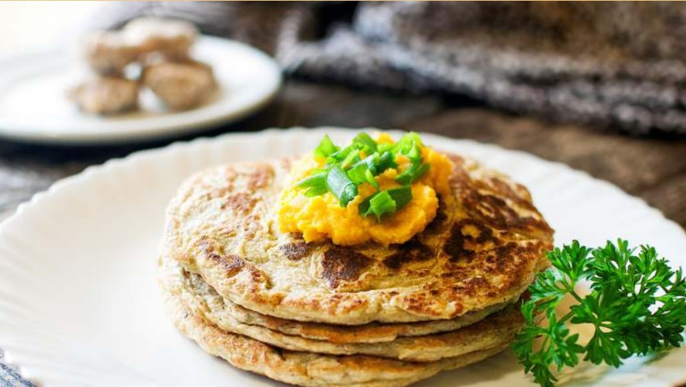 Continue lendoINGREDIENTES: 1/3 de xícara de farinha de grão de bico 1/4 de farinha de arroz 1/3 de xícara de água