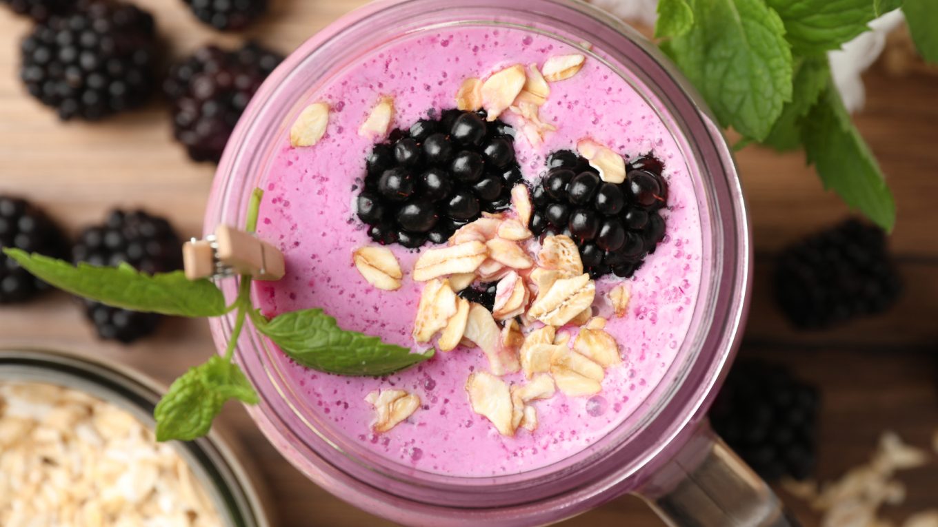 Batida de amora e aveia Uma batida refrescante e nutritiva que combina a doçura da amora com o poder