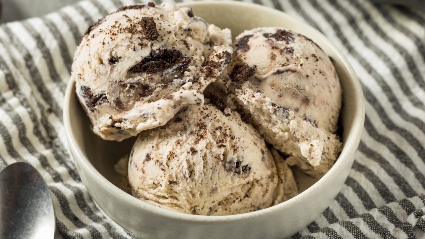 Sorvete Light de biscoitos, creme e hortelã