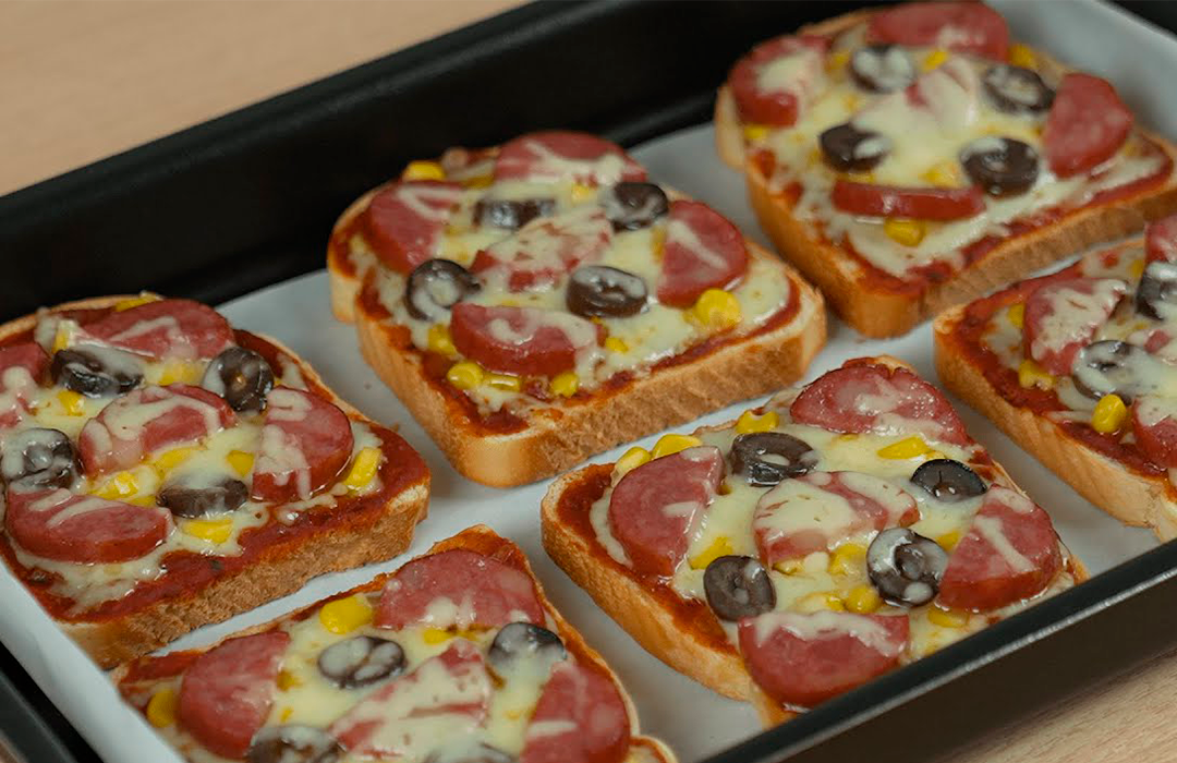 • Para uma pizza mais crocante, torre levemente as fatias de pão antes de montar.