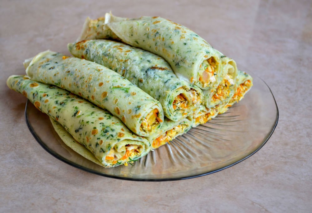 e o sal. Recheie as panquecas, enrole-as e sirva a seguir.