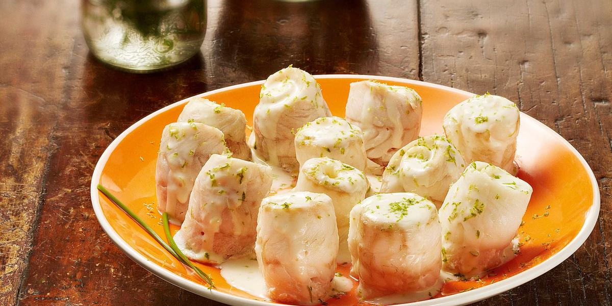 Receitas Ninja – Rolé de linguado com recheio cremoso de grão ao molho de laranja