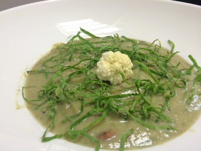 até engrossar. Junte a couve-flor e deixe cozinhar até ficar macia. Desligue o fogo.