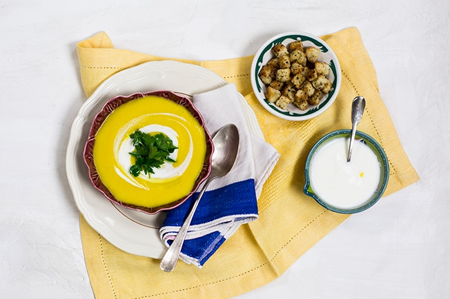 Nesta receita, os legumes vão do congelador direto para a panela e viram uma sopa saborosa. O iogurte congelado deixa o preparo mais cremoso, dá um toque de acidez e a deixa a sopa mais geladinha para o verão.