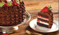 6. MONTAGEM: Corte o bolo de chocolate em 2 discos e umedeça com a calda reservada.
